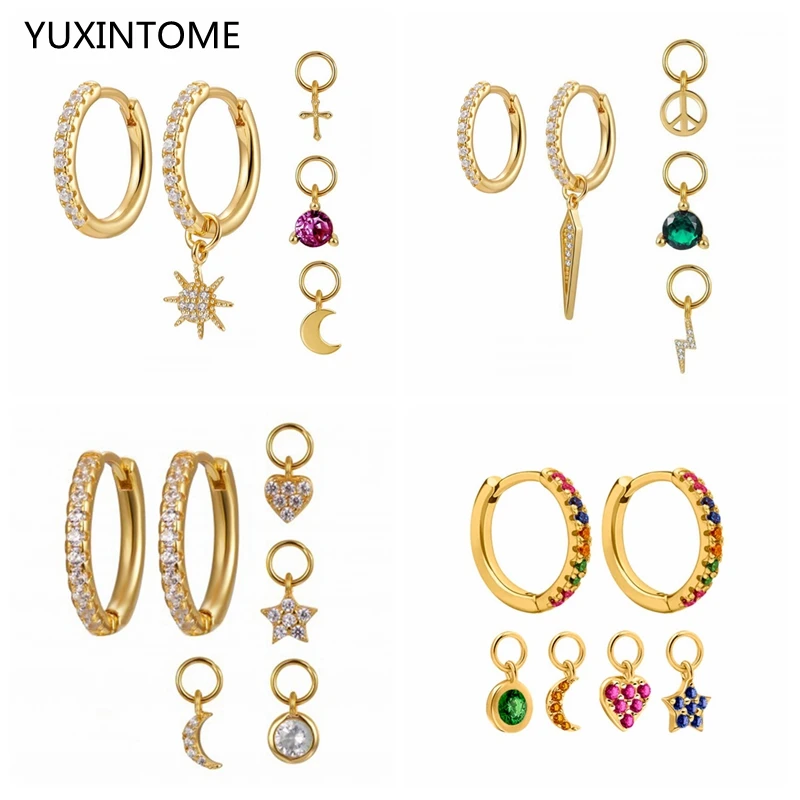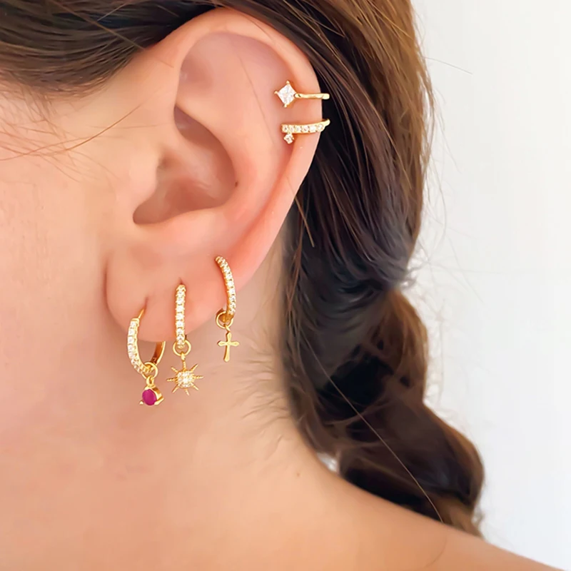 925 plata esterlina oreja hebilla aro pendientes conjuntos relámpago/Spike/SOL colgante Huggie pendientes conjunto para mujer joyería de moda