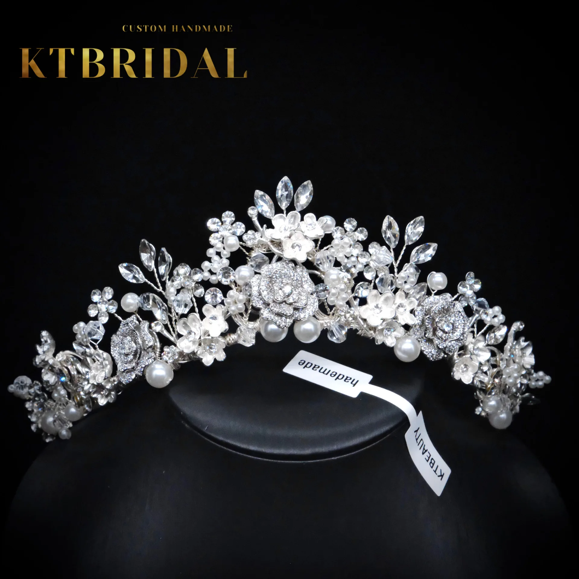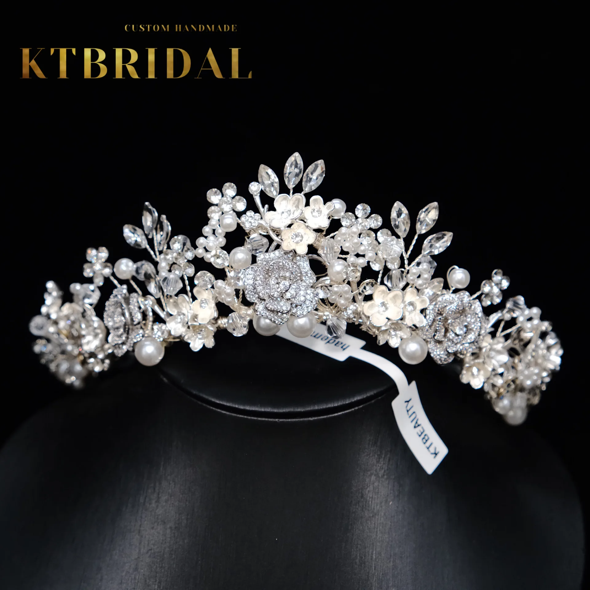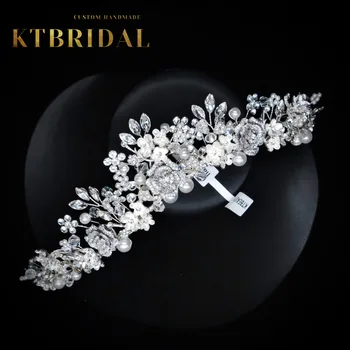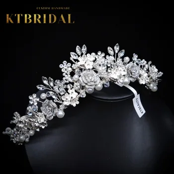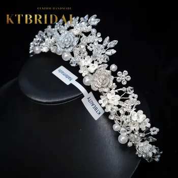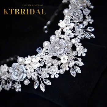 KTBRIDAL-Tiara de flores de circón hecha a mano para mujer, tocados de novia, perlas de cristal, joyería de moda, accesorios de boda para regalo