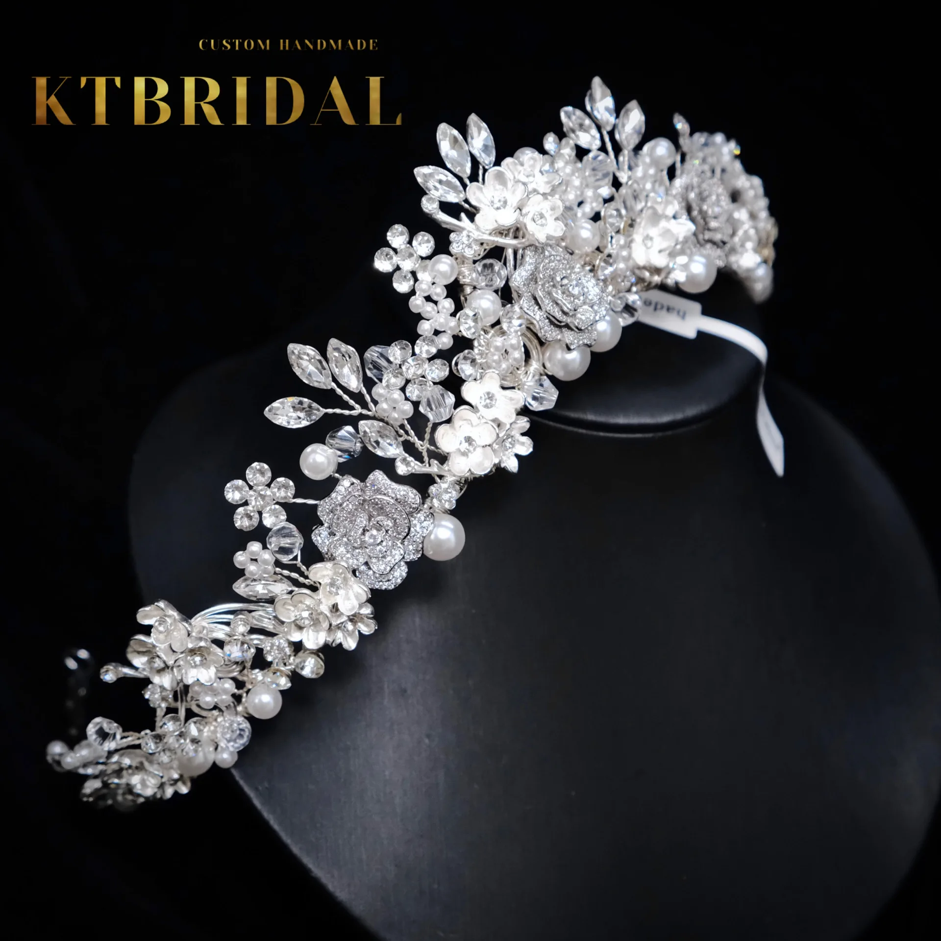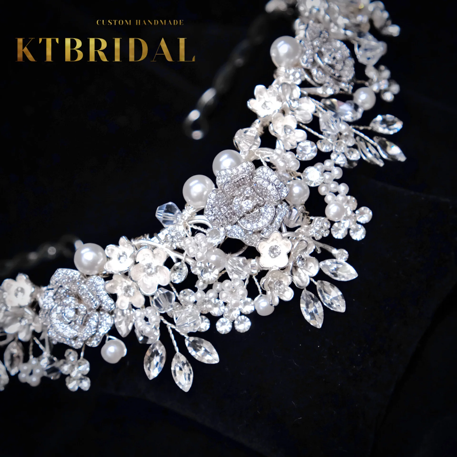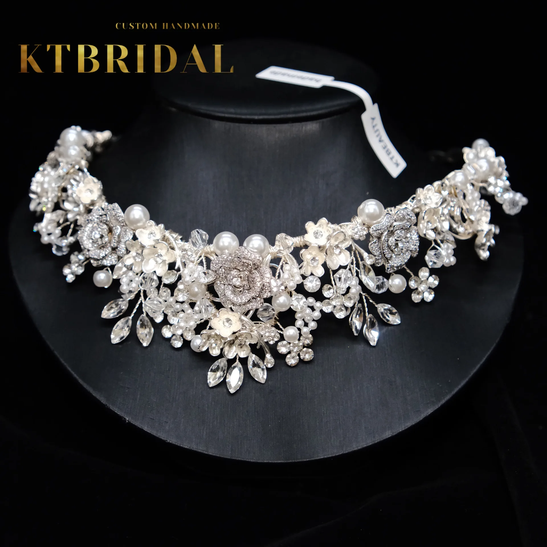 KTBRIDAL-Tiara de flores de circón hecha a mano para mujer, tocados de novia, perlas de cristal, joyería de moda, accesorios de boda para regalo