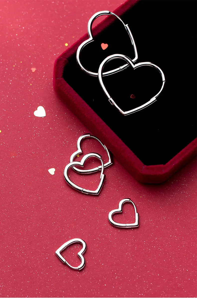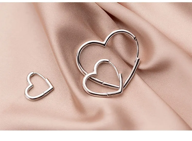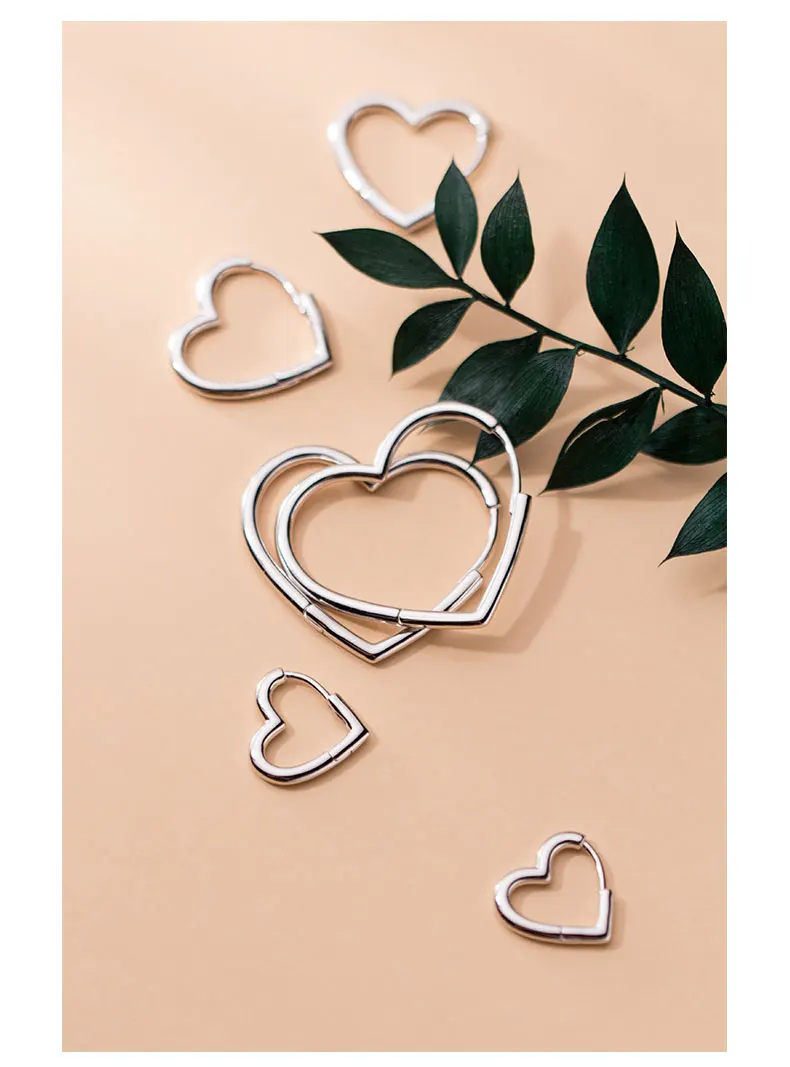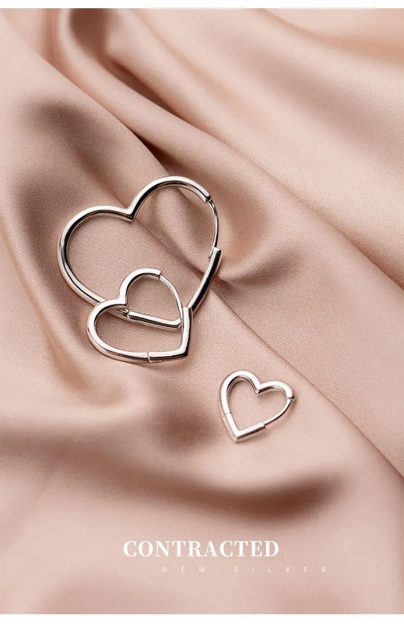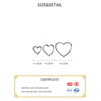 Título: pendientes de aro con diseño de corazón minimalista, joyería fina de Plata de Ley 925, pendientes de plata para mujer