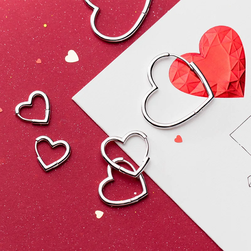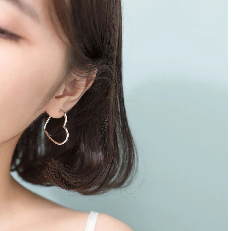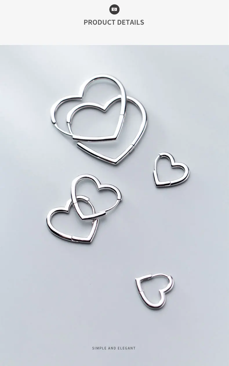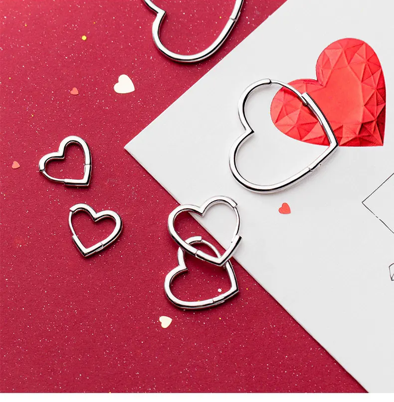 Título: pendientes de aro con diseño de corazón minimalista, joyería fina de Plata de Ley 925, pendientes de plata para mujer
