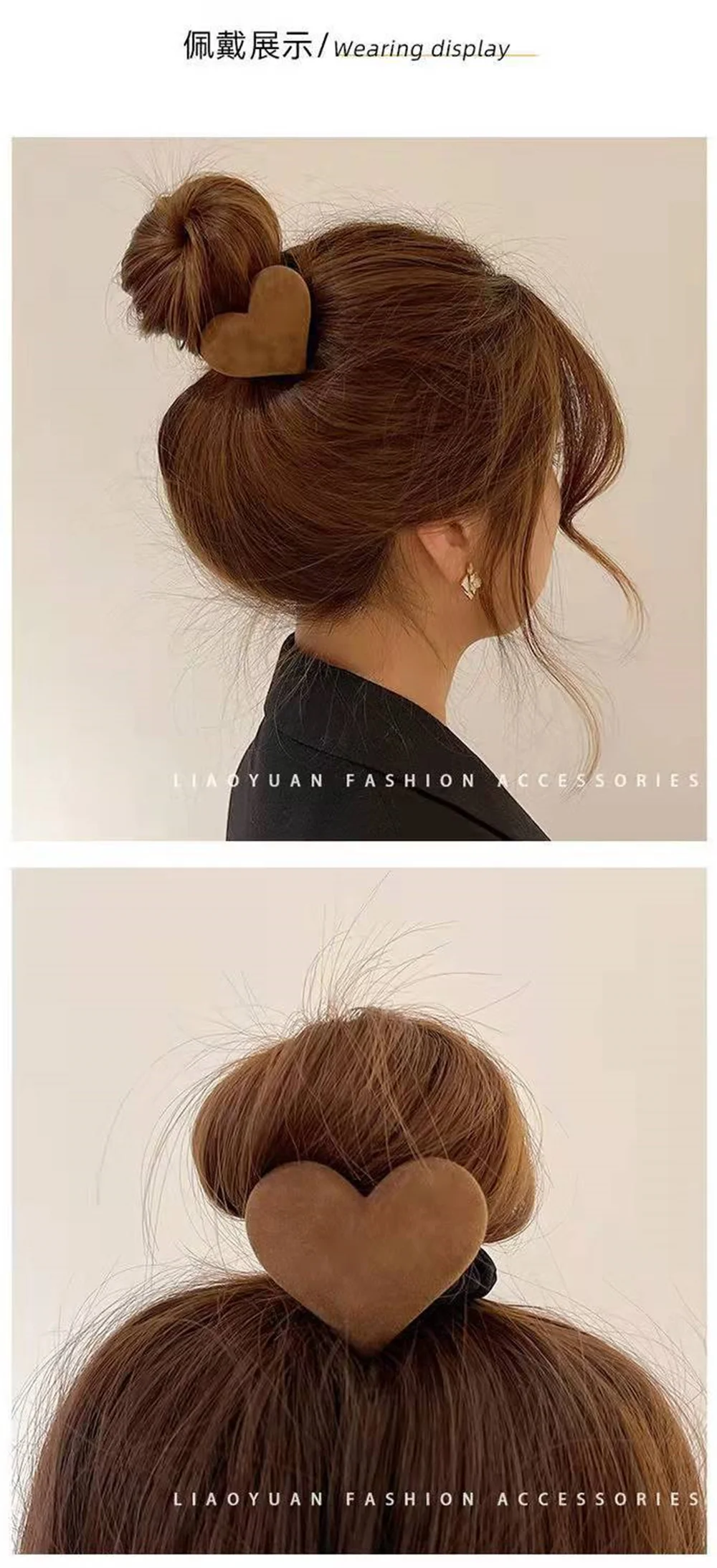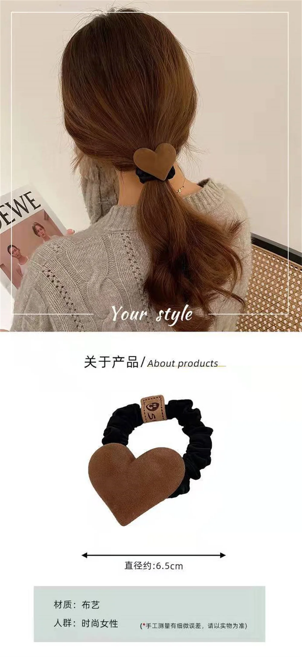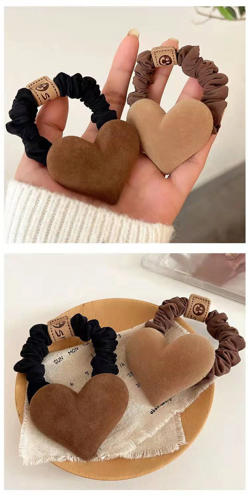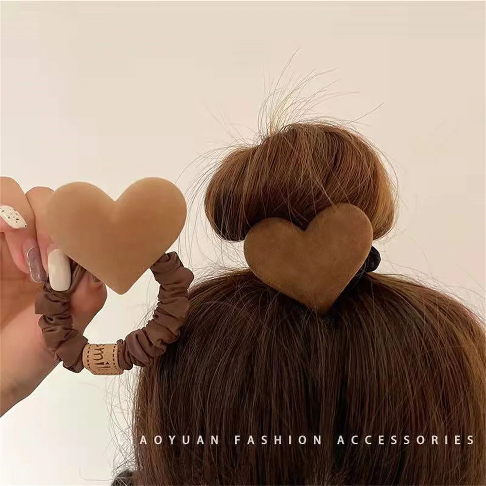 Lazo con forma de corazón para mujer y niña, bandas de pelo de felpa de Color sólido, Color caqui y café, coletero de goma elástica