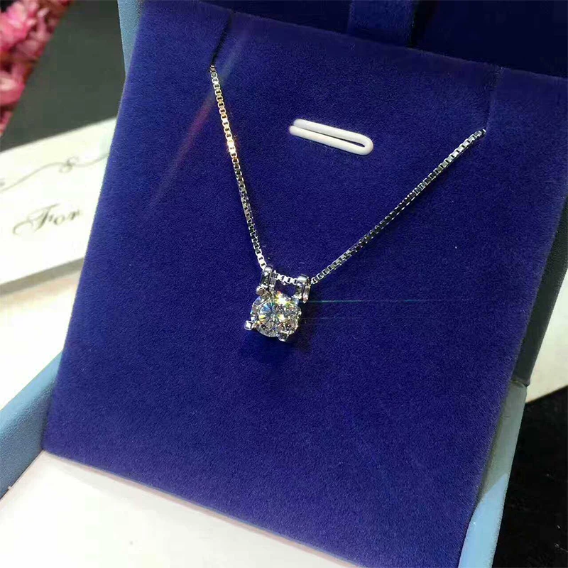 Lnngy 925 caja de plata esterlina collar de cadena brillante D Color 0.5CT corte redondo Moissanite colgante collares para joyería de los Amantes