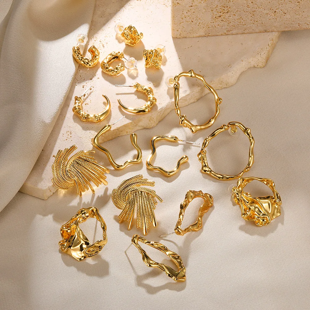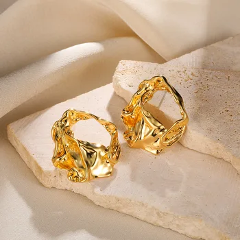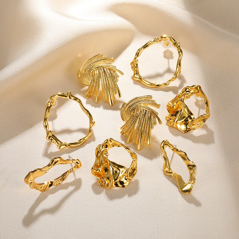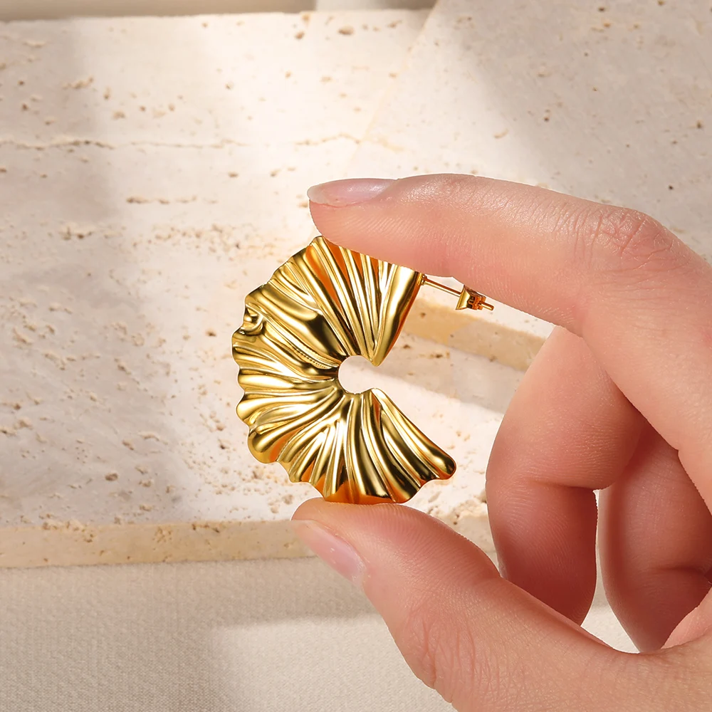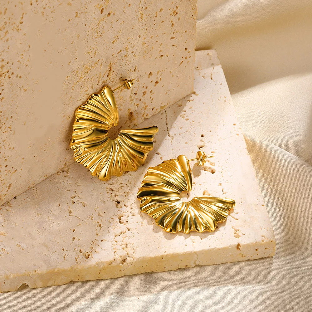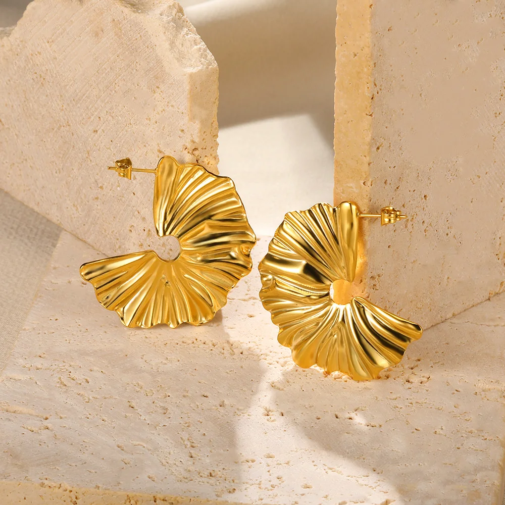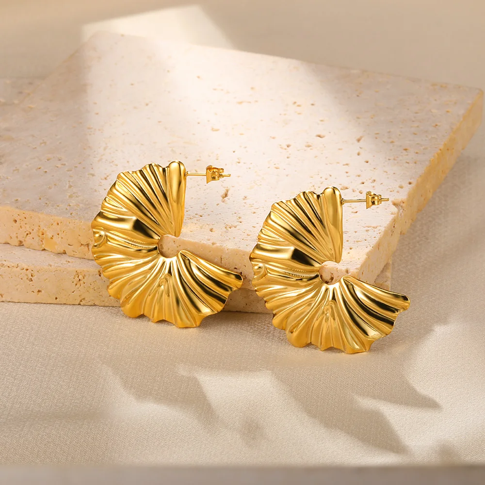 Pendientes bohemios en forma de abanico para mujer, aretes irregulares exagerados de acero inoxidable, joyería de moda, regalos de fiesta