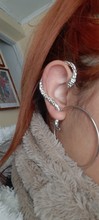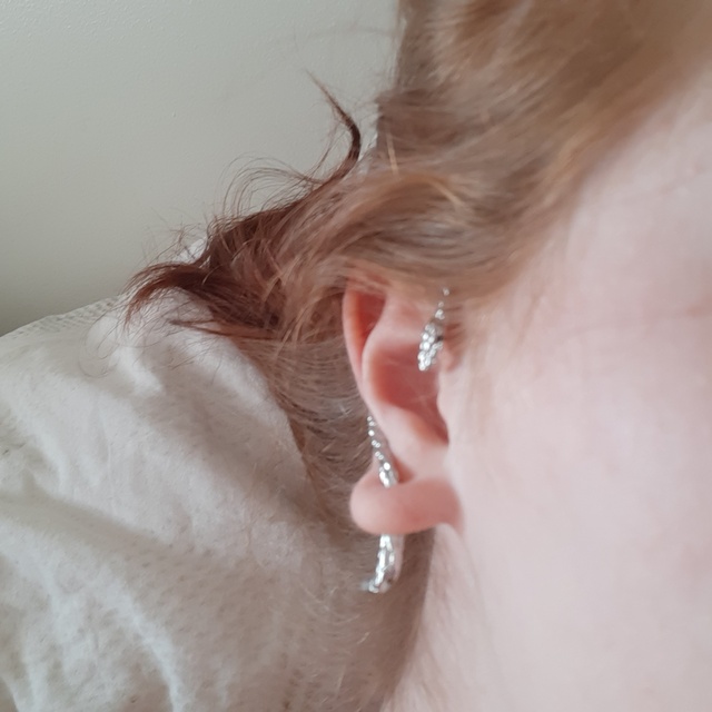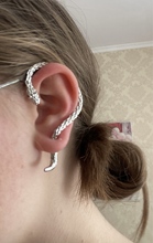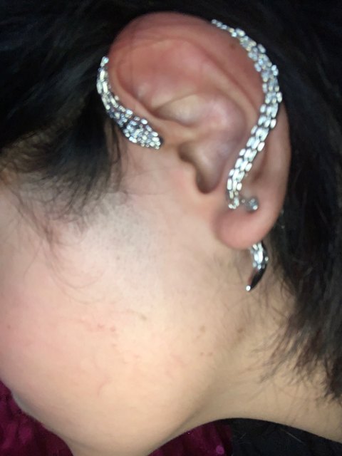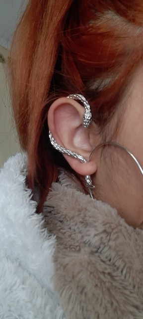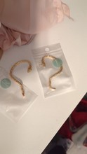 El pendiente es chic, muy bien hecho. Encaja muy bien en la oreja, pero no me encajó, porque tengo un pinchazo hecho alto, debido a esto, el lóbulo de la oreja se vuelve alto y no se ve hermoso, pero este es mi personal.