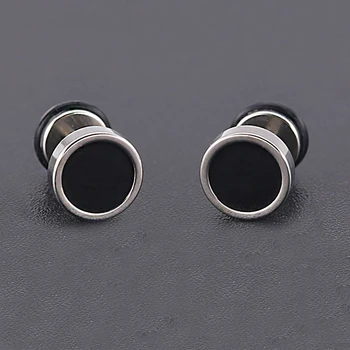 Pendientes de acero inoxidable para hombre, aretes redondos de titanio, goteo de aceite negro, accesorios de joyería Punk, moda coreana