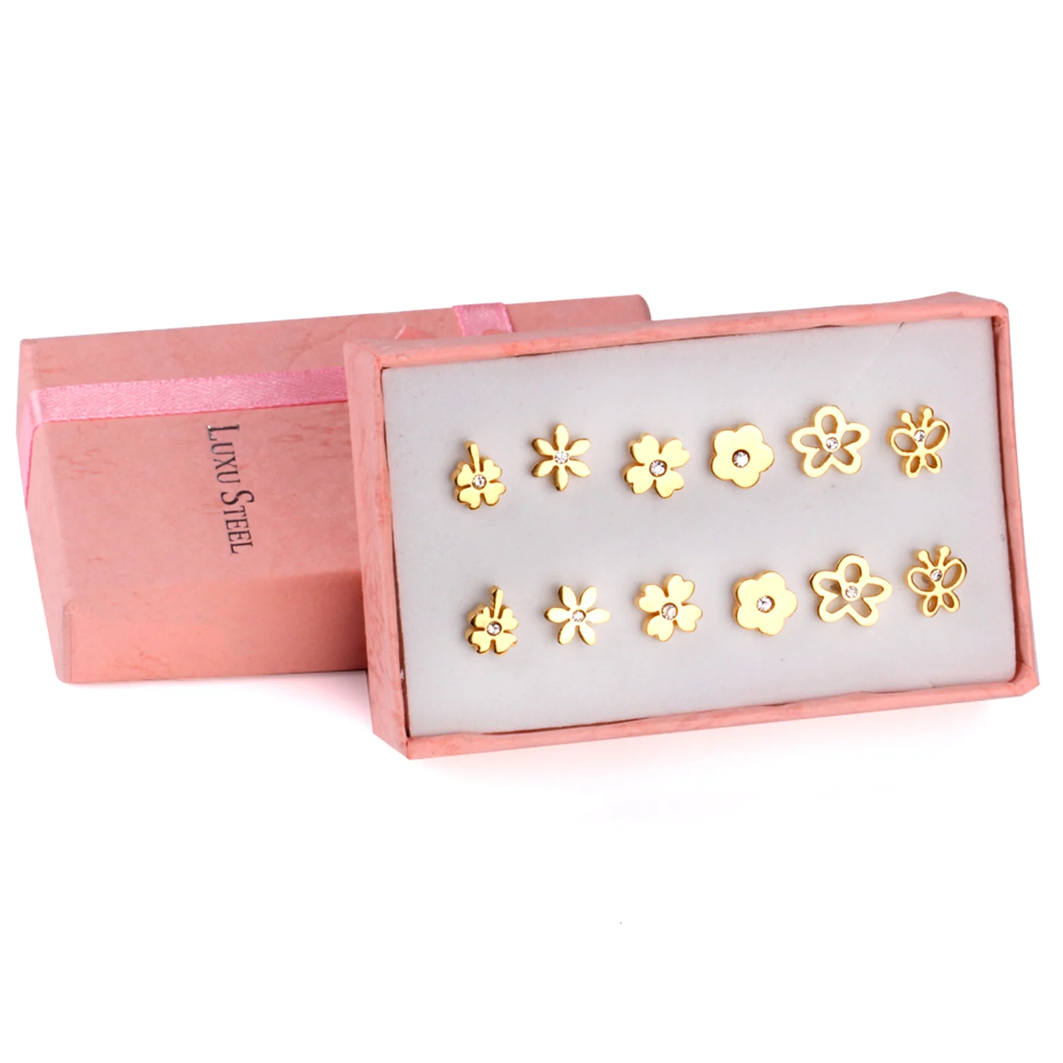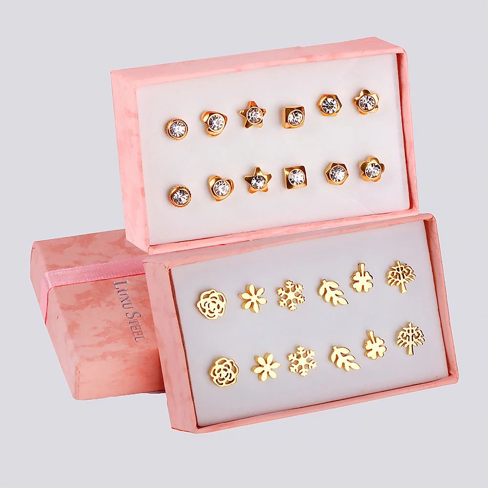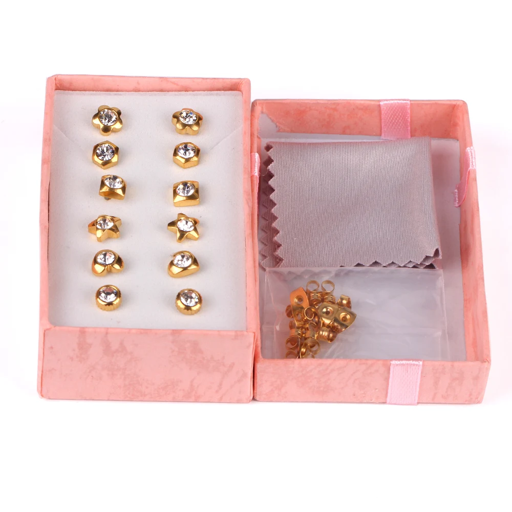 Pendientes de acero inoxidable para mujer, aretes de circonita de cristal, 6 pares/caja, 2021