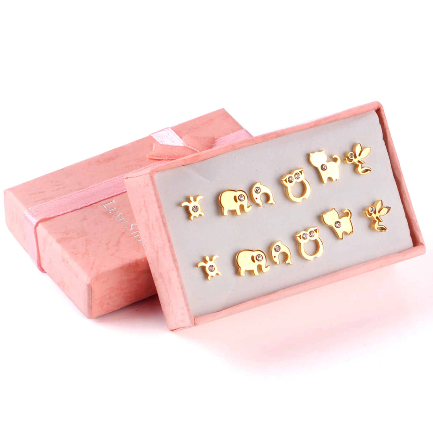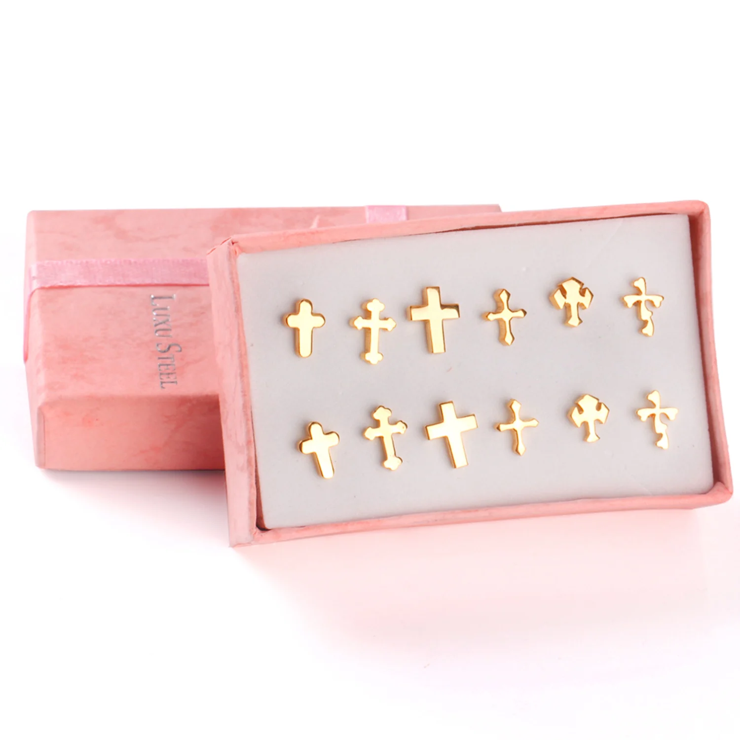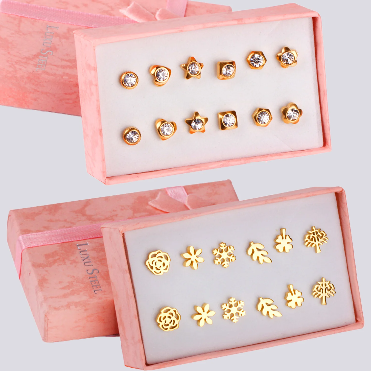 Pendientes de acero inoxidable para mujer, aretes de circonita de cristal, 6 pares/caja, 2021