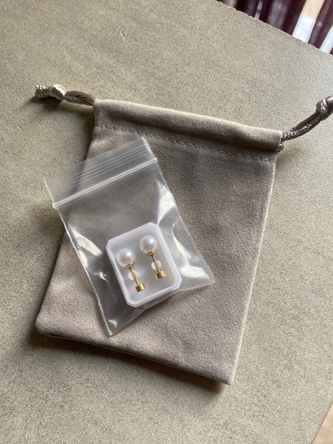 Precioso empaque, en funda, y preciosos los pendientes! Son muy cómodos de poner, mejor que con la bolita, yo los dejo para dormir y no molestan. Me encantan!!!!