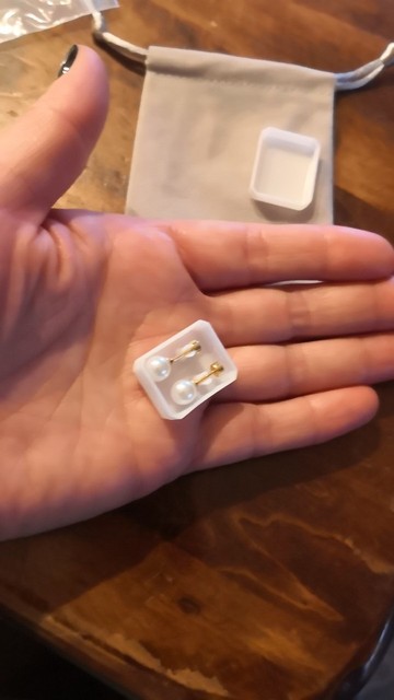 ¡Muy hermosos pendientes! Exactamente lo que estaba buscando porque no me asaltan mientras duermo, pero siguen siendo semental. Ninguna reacción alérgica todavía o cambio del color del metal.