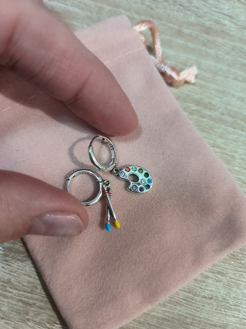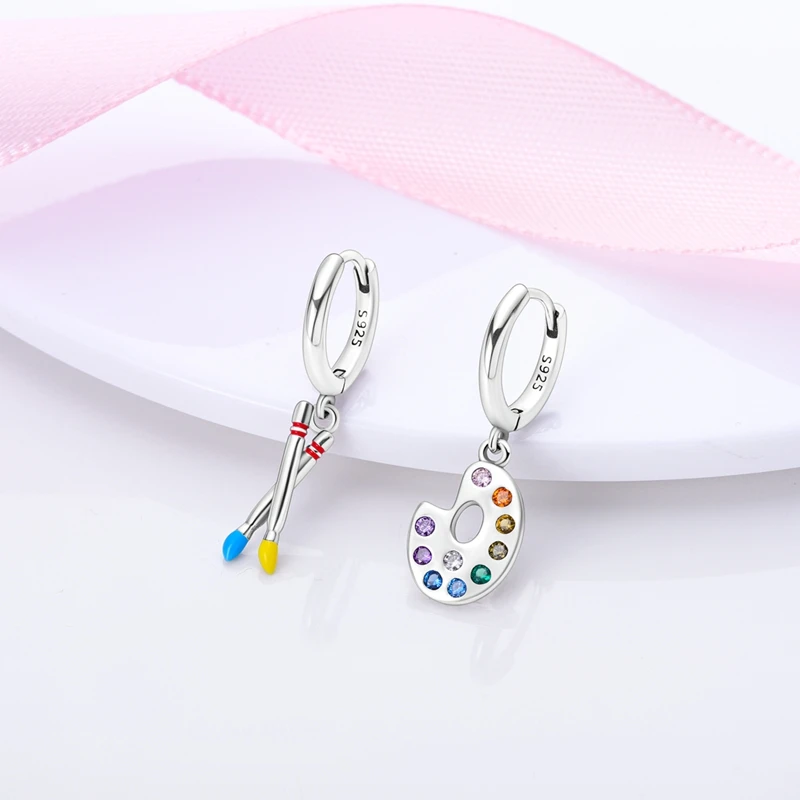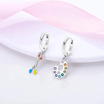 Pendientes de aro asimétricos de diseño Original para mujer, aretes de paleta de pintor para adolescentes, Color plateado, esmalte, joyería de lujo para fiesta