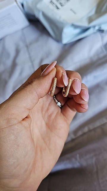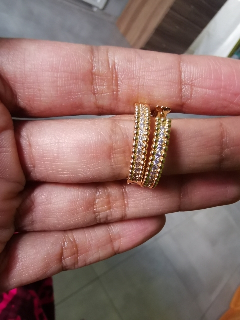Están preciosos estos aretes, me encantaron!!! Se ven de muy buena calidad, no pesan nada, esperemos que no se hagan negros y que no me haga reacción.
