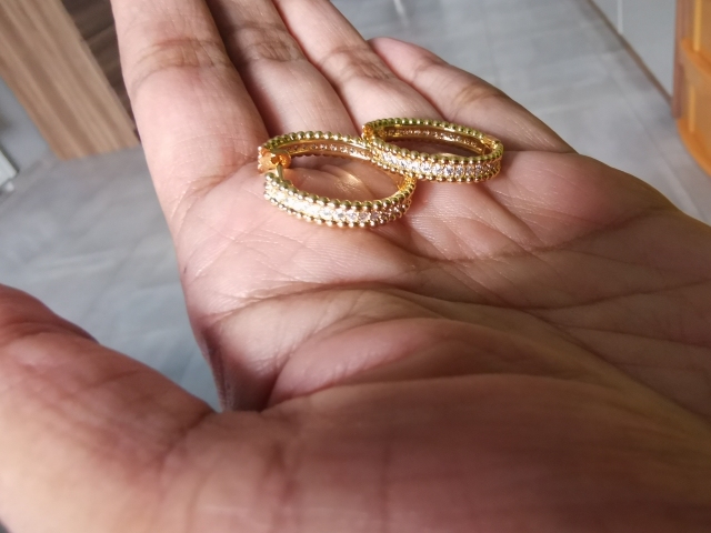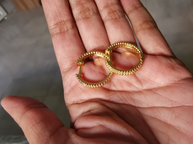 Argollas preciosas, tamaño perfecto, material acero quirúrgico, color bonito y delicado. Recibí el pedido en 11 días, llegó muy rápido. Gracias….