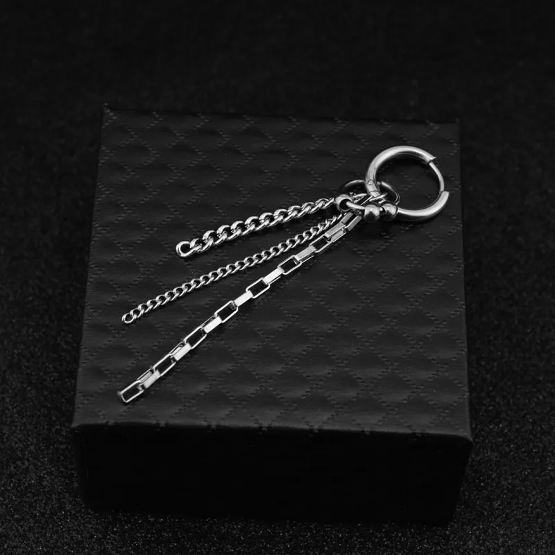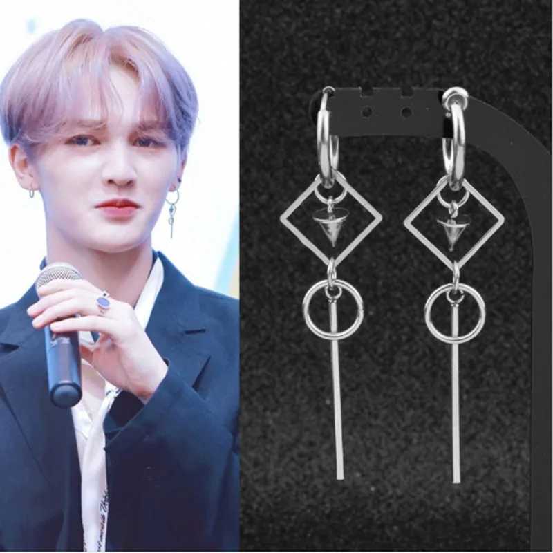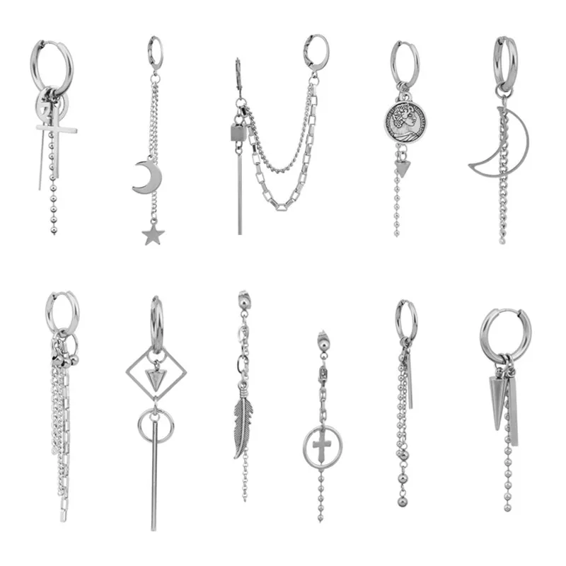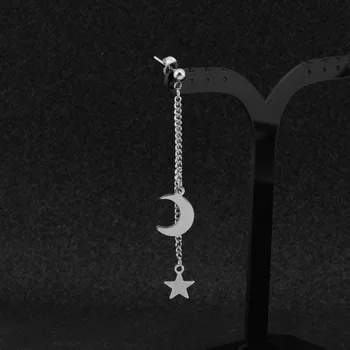Pendientes de gota de acero inoxidable para hombres y mujeres, colgante de Luna y Estrella, borla larga, Unisex pendientes de aro, joyería Kpop Suga JIMIN, 1 unidad