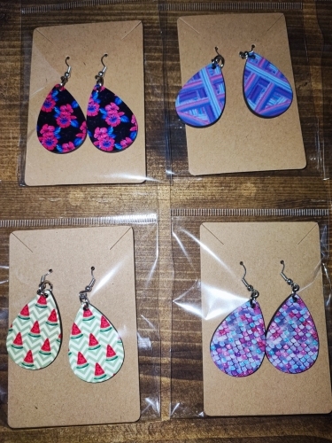 ● Materiales de alta calidad: los pendientes de impresión por sublimación de doble cara están hechos de material de madera, con superficie brillante, buena dureza y fácil de calentar. El gancho del pendiente y el anillo de salto están hechos de metal de alta calidad, duradero y ligero, cómodo de llevar y difícil de romper.