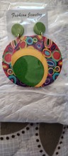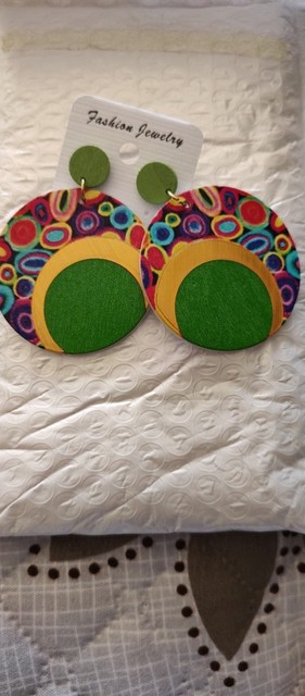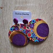 Round Printed Colorful Wooden Earrings