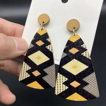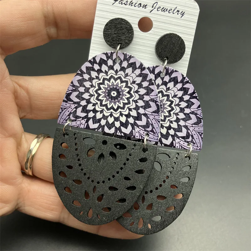 Pendientes de madera coloridos con estampado redondo exagerado étnico para mujer, moda, patrón geométrico, declaración, Pendientes colgantes, joyería