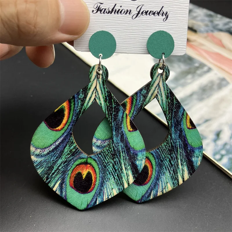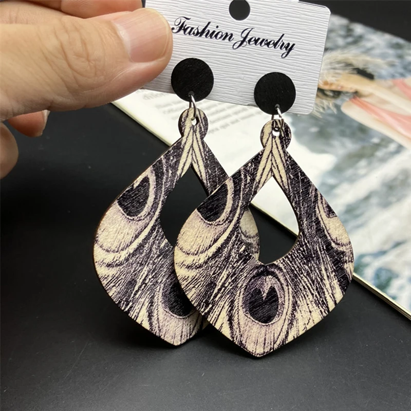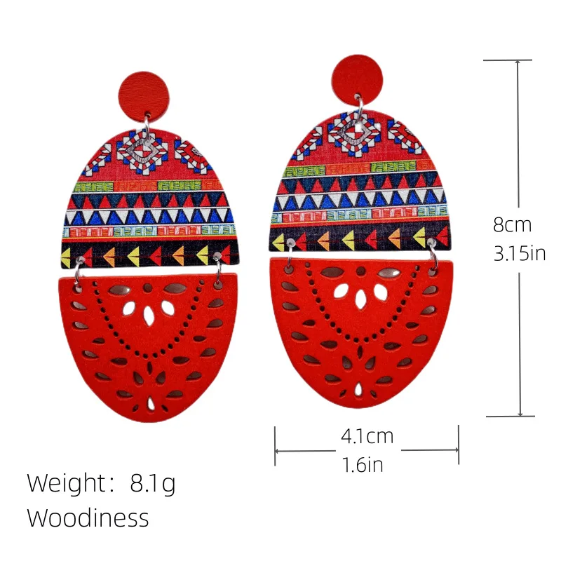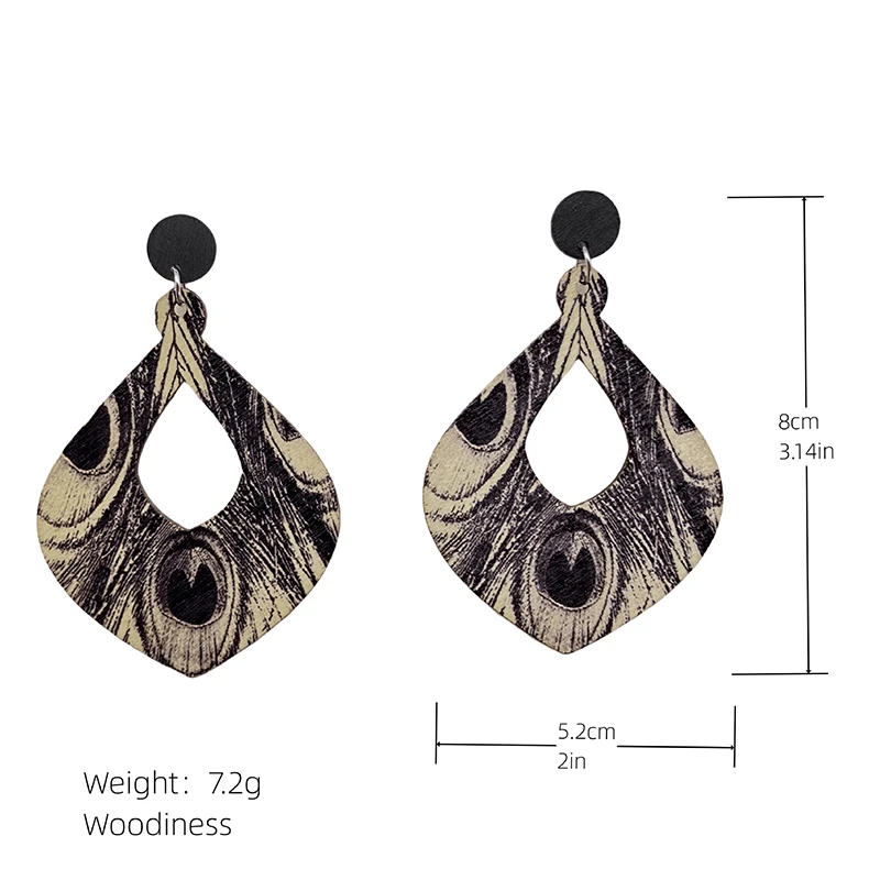 Nota: Este producto está hecho de madera, el patrón del pendiente está impreso en un lado y puede haber una pequeña diferencia de color inconsistente en la parte posterior del pendiente, lo que normalmente se permite, por favor, no haga un pedido si le importa.