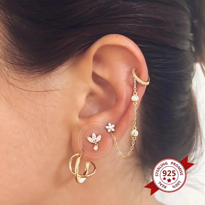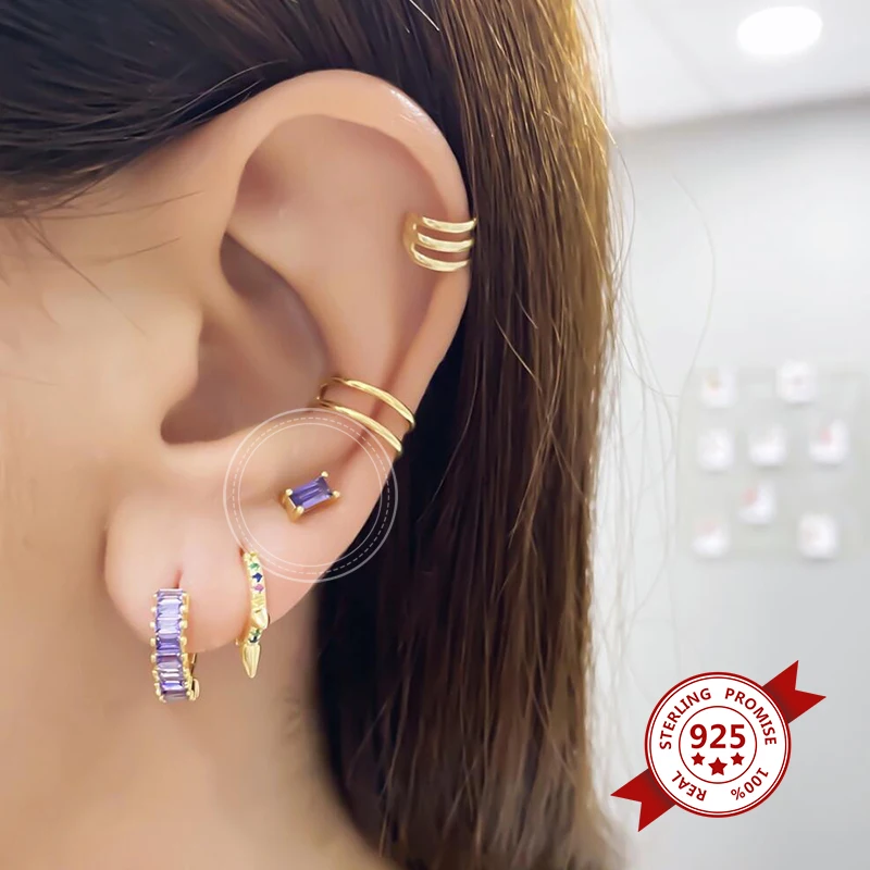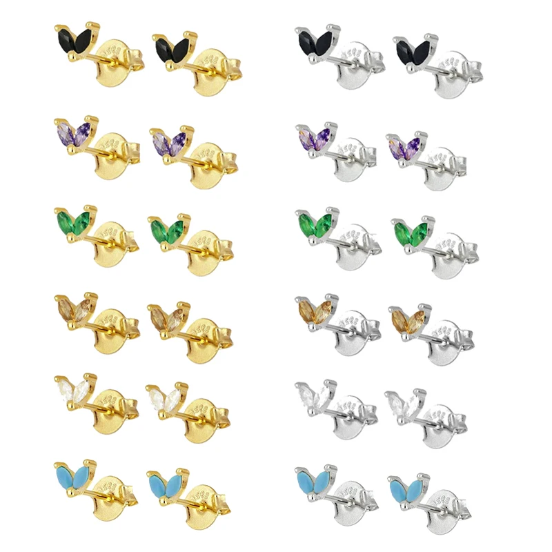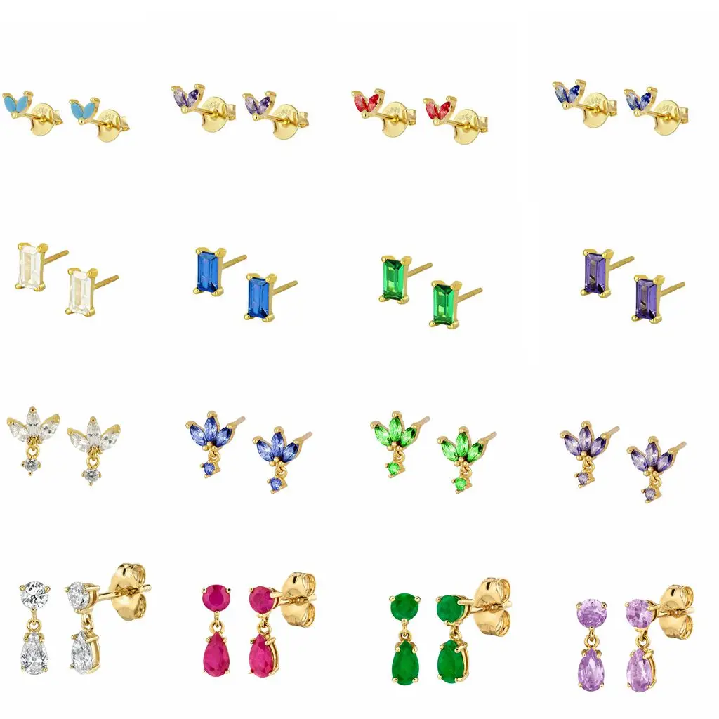 Aguja de oreja de Plata de Ley 925, pendiente de tuerca pequeño de cristal colorido, Piercing Ohrringe Pendiente, joyería de lujo para mujer, fiesta de moda