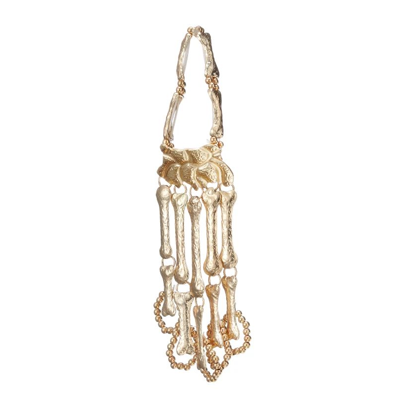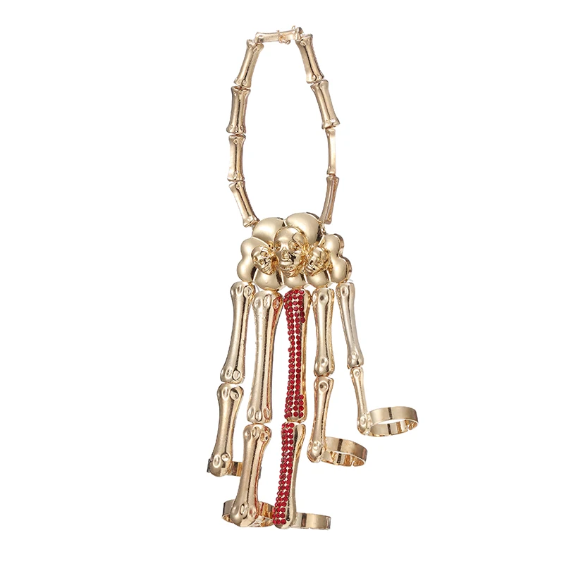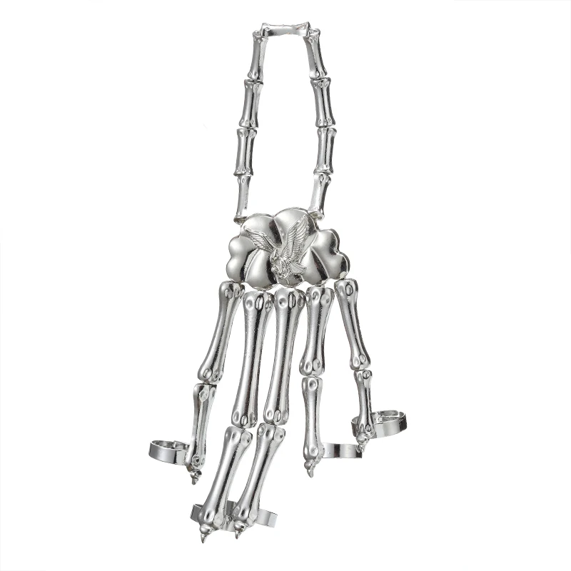 Pulsera de mano de esqueleto de Metal con anillo para mujer, pulsera de Halloween hecha a mano con dijes de moda, dedos de Calavera, regalos de cumpleaños