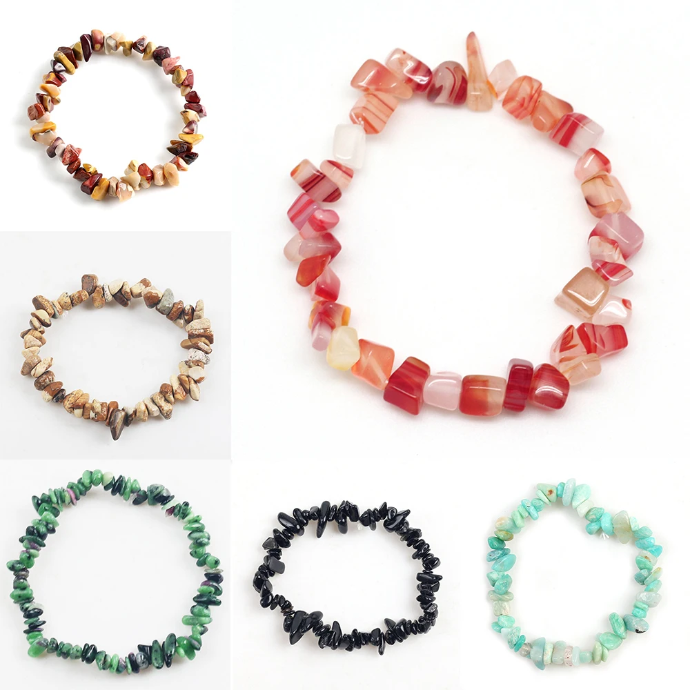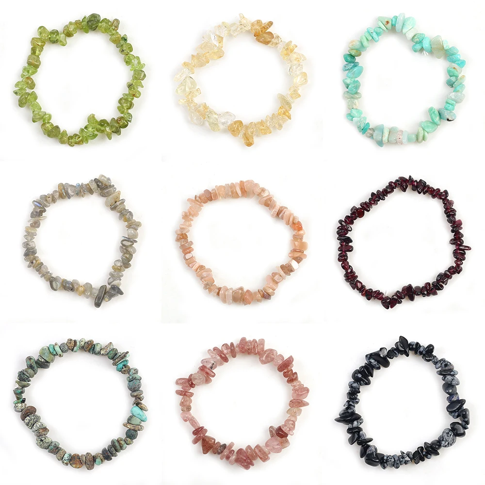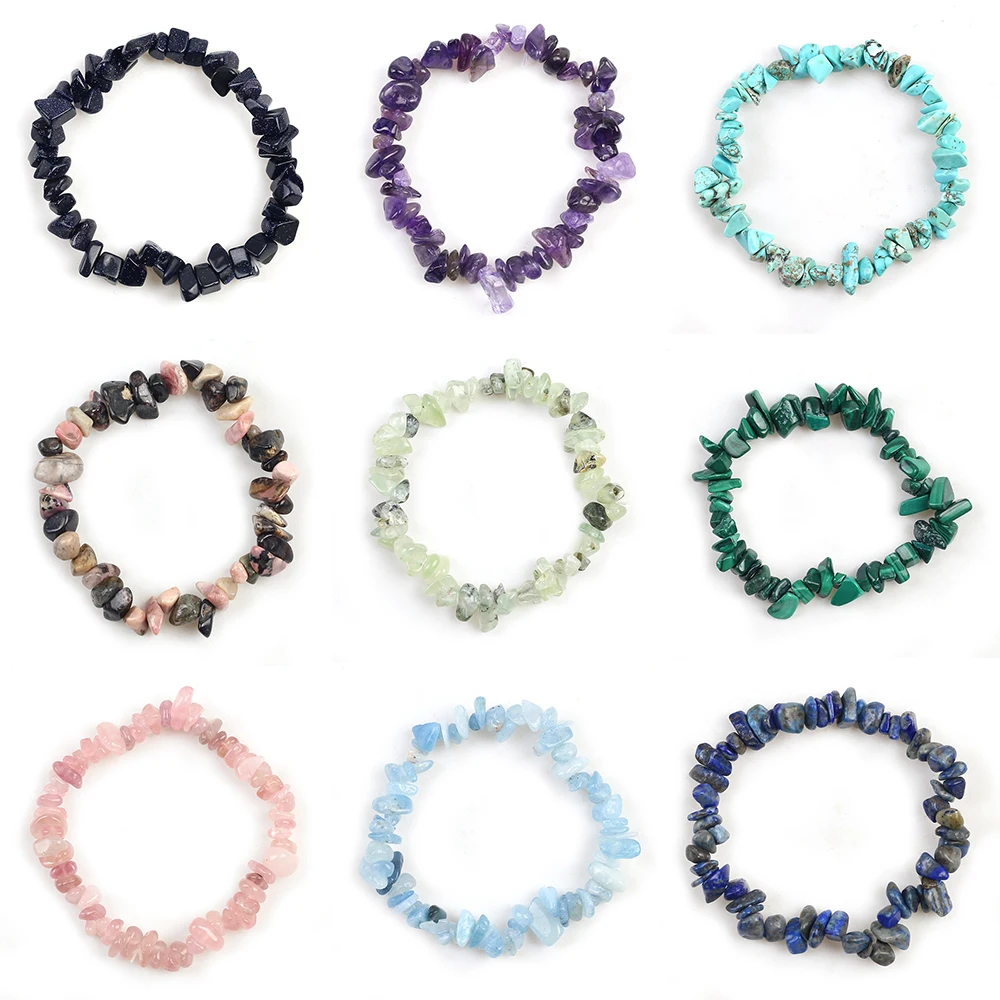 Pulsera de piedra de cristal Natural para mujer, cuentas elásticas irregulares de grava, fabricación de joyas, Abalorios