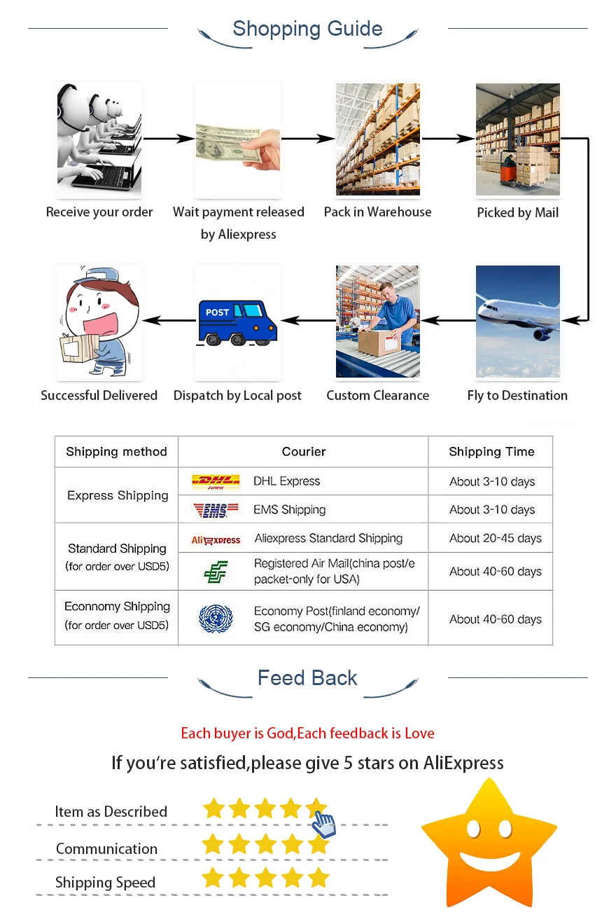 4. Generalmente, la mayoría de los pedidos se procesan dentro de5-7 días hábiles¡! Pero la demora en la entrega podría ocurrir a medida que nuestro almacenamiento cambia cada