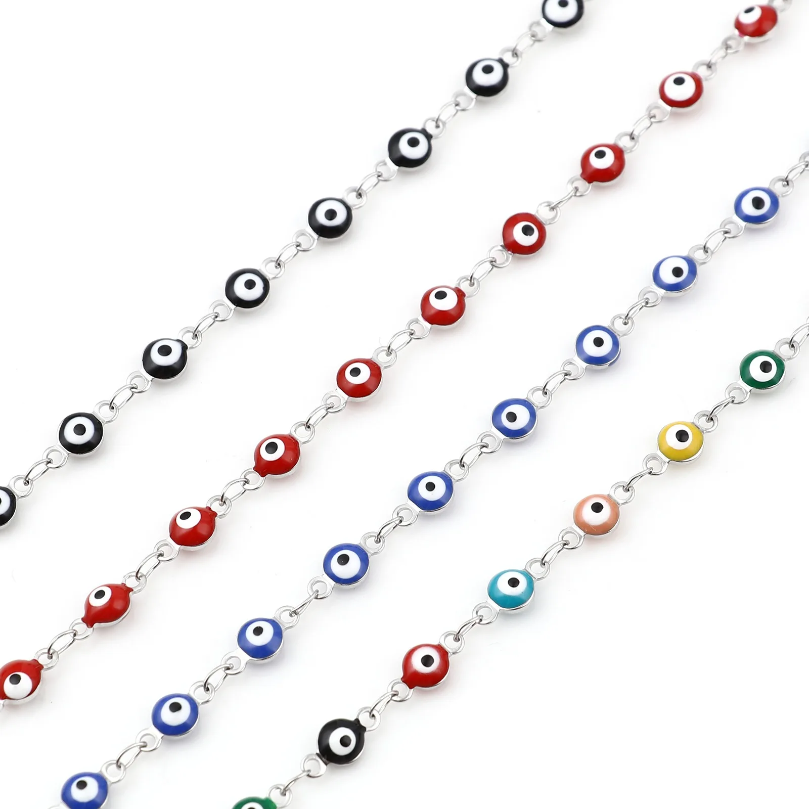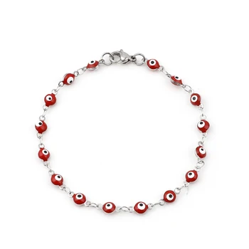 Pulseras redondas de acero inoxidable para mujer, joyería de esmalte de mal de ojo, Color plateado, joyería turca, brazalete bohemio, 19,5 cm de largo