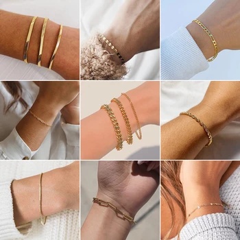 Pulseras de cadena de serpiente clásicas SUNIBI para mujer tendencia chapada en oro cadena cubana de acero inoxidable pulsera regalos de moda para mujer joyería