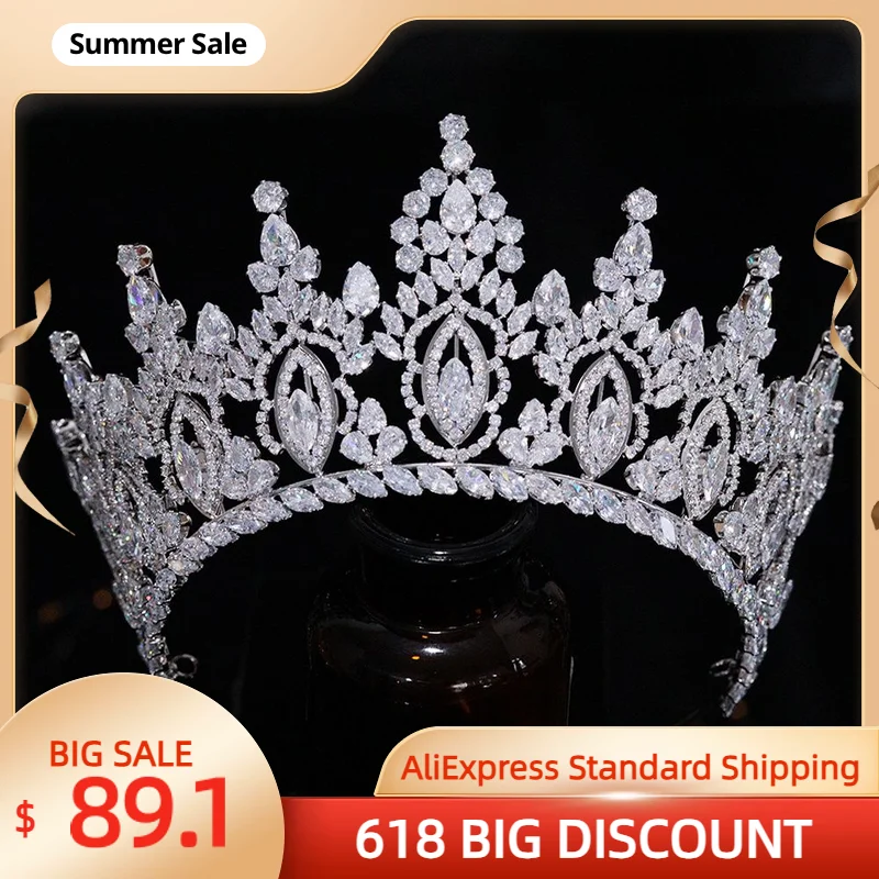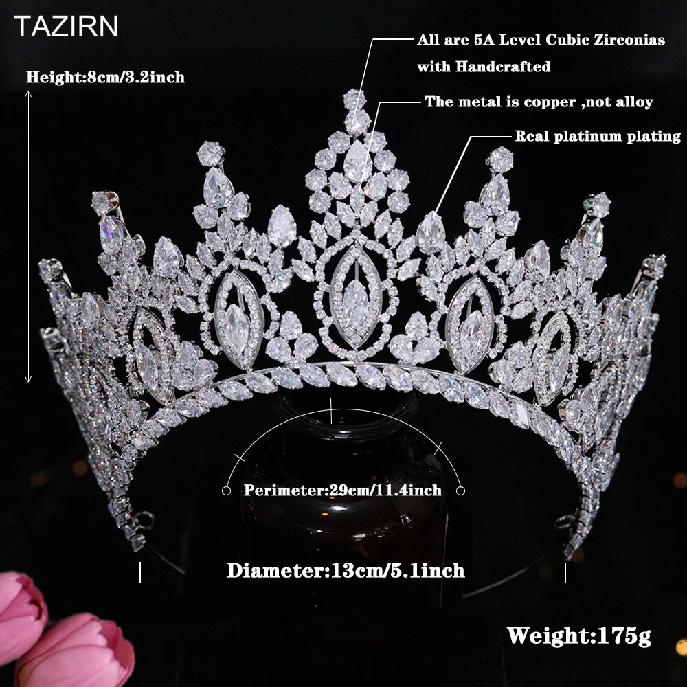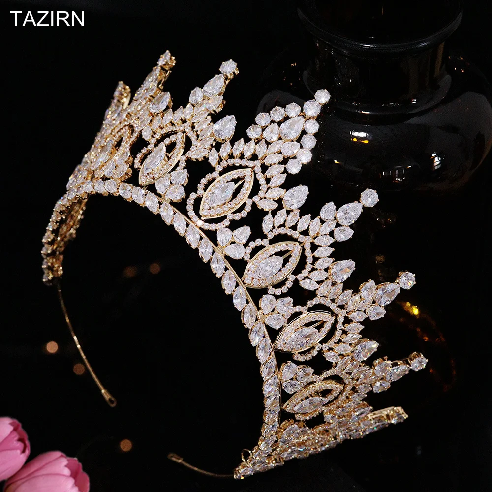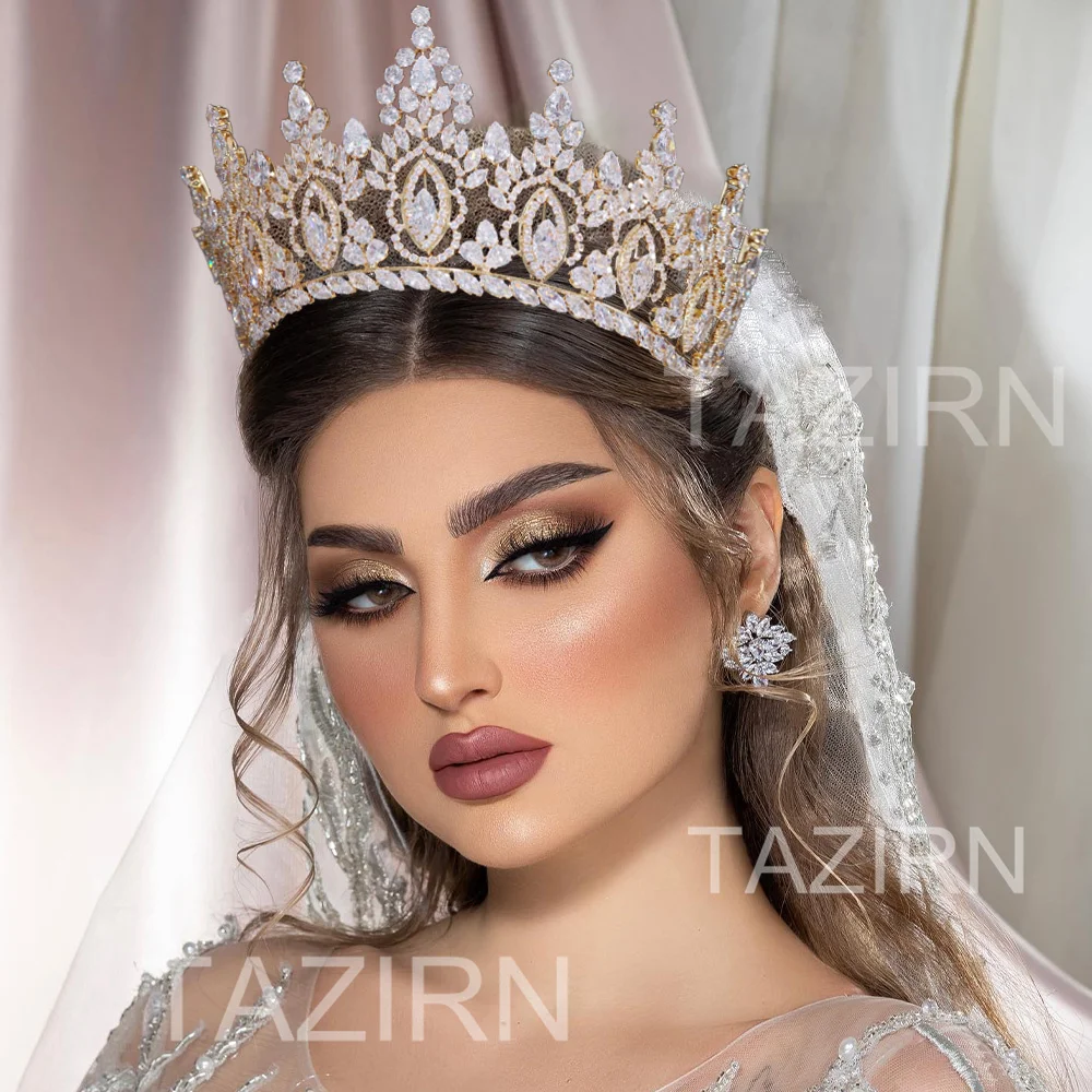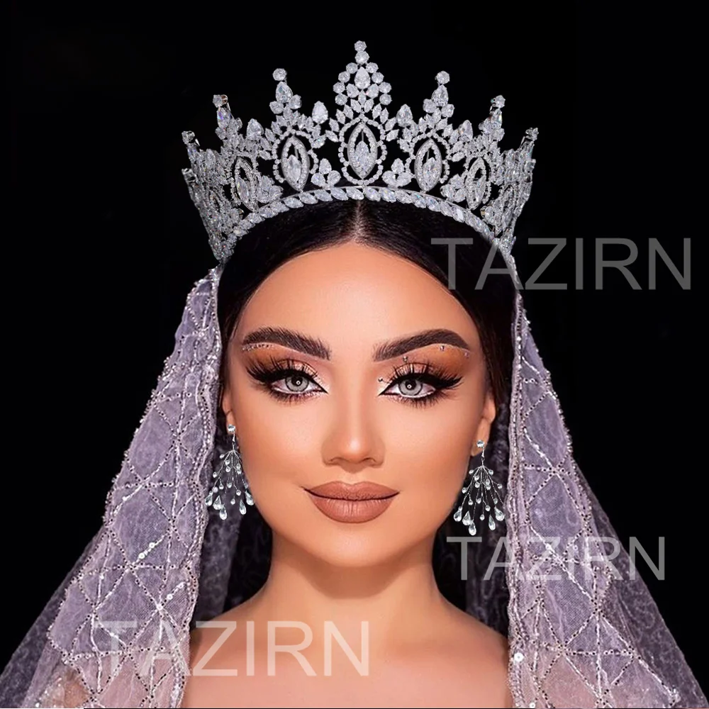 TAZIRN-tiara de novia de lujo de Zirconia cúbica, accesorios para el cabello para fiesta de graduación occidental árabe, 5A, grandes coronas nupciales DE BODA hechas a mano