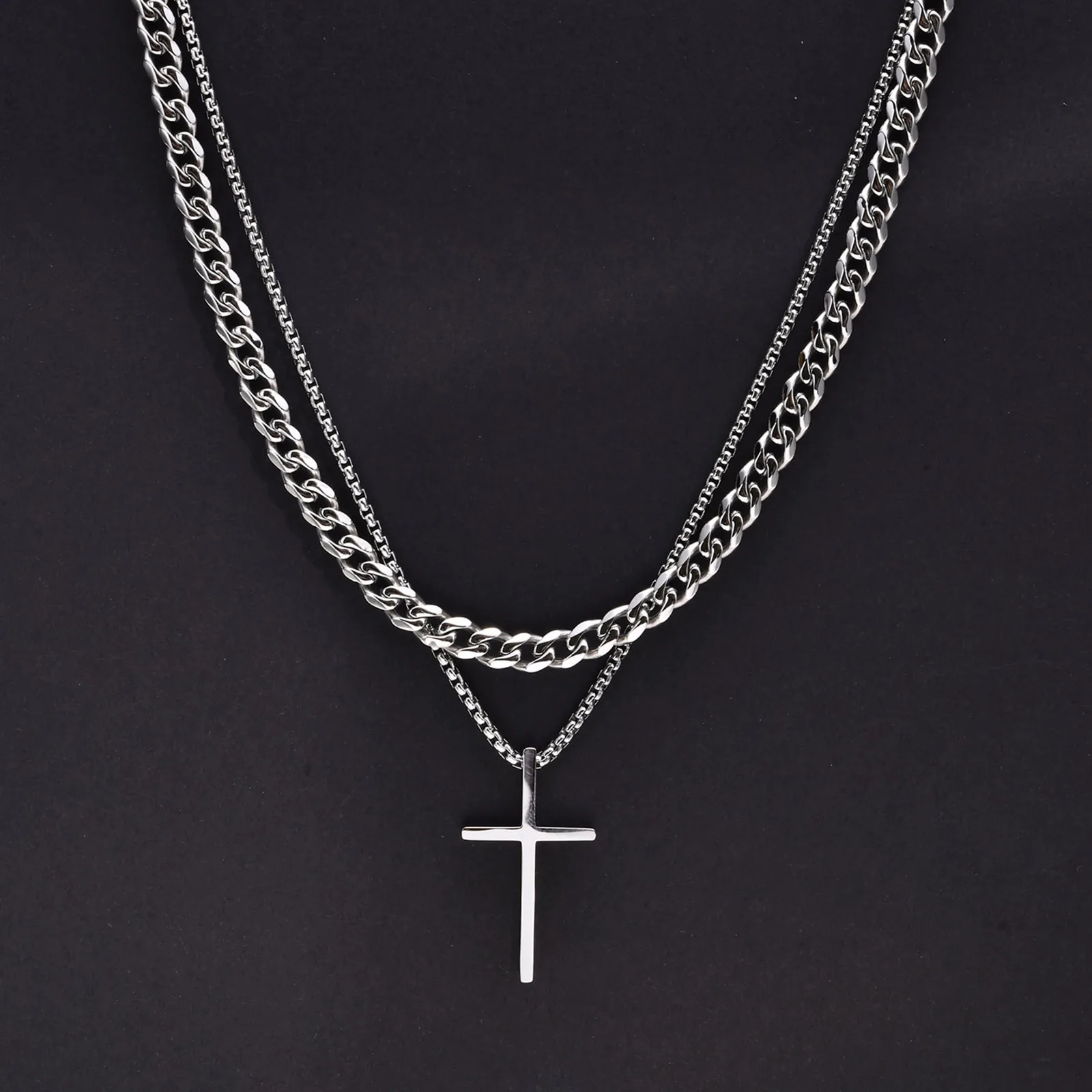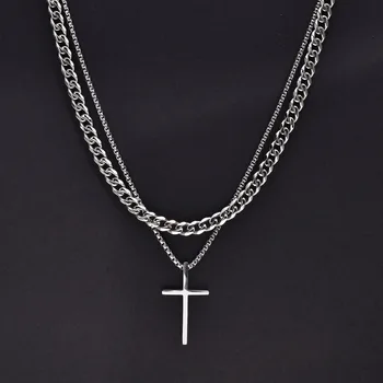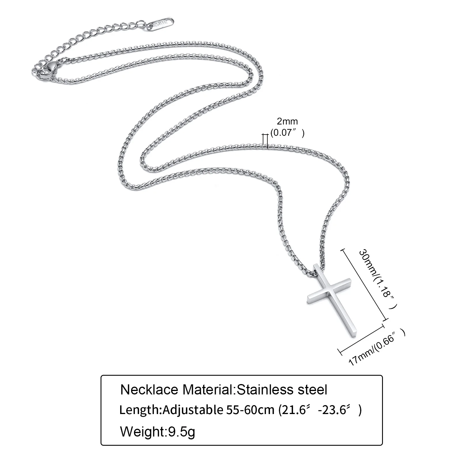 Vnox-collares de Cruz para hombre, colgante de Cruz liso en capas de acero inoxidable, Collar de cadena de caja de cuerda, Collar de Jesús de oración Simple